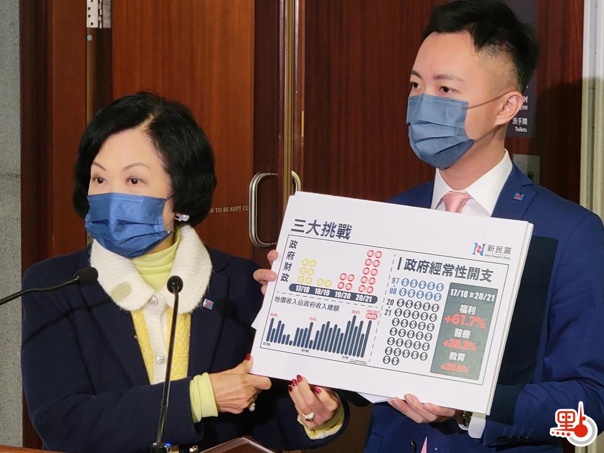新民黨主席葉劉淑儀見記者時表示,政府財政儲備持續下降,過去兩年連續出現赤字,政府收入又過分依賴賣地,反映經濟轉型未有成果,經常性開支大幅增加,認為政府有必要開源節流。新民黨建議,政府目標下一個財政年度將政府經常開支再壓縮1%。另外,疫情下香港賽馬會博彩及獎券收入屢創新高,新民黨建議,提高足球博彩稅80%及賽馬博彩稅75%至80%,增加庫房收入。該黨亦建議檢視社福資源運用,嚴防過度外判社會服務。