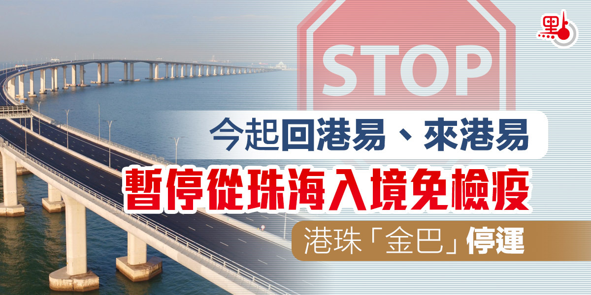 「回港易」及「來港易」計劃暫停接受從珠海口岸經港珠澳大橋入境香港的預約申請,已通過「回港易」或「來港易」計劃取得從珠海口岸經港珠澳大橋入境香港的預約名額,亦將不能使用有關口岸進入香港而獲得豁免港方的強制檢疫安排。