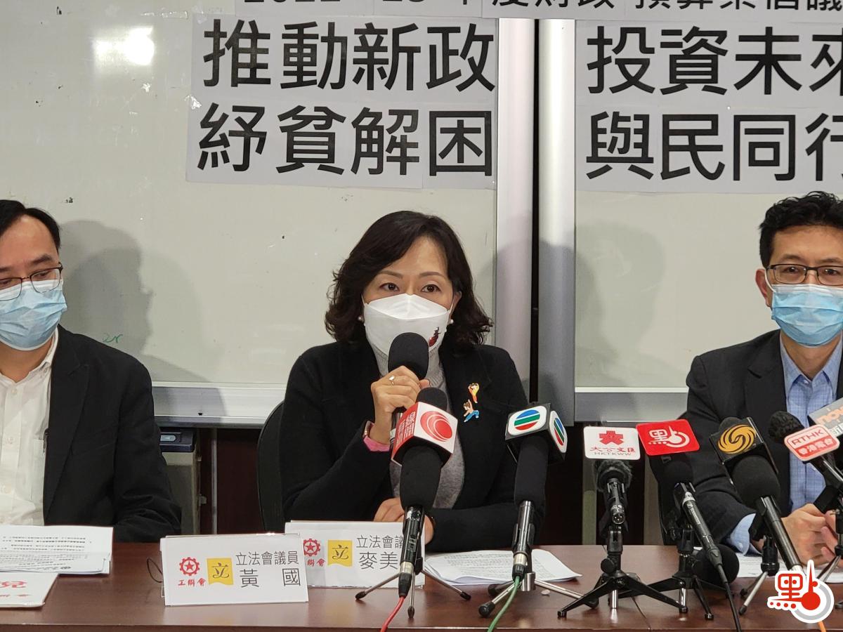 麥美娟續指,電子消費券推出以後,有助香港電子消費的推動,減少現金使用,在防疫及政策去動上有正面效果,她表示明白有意見關注政府的財政壓力,因此工聯會建議政府向盈利超過一億元的企業徵稅1%,以舒緩政府財政壓力。
