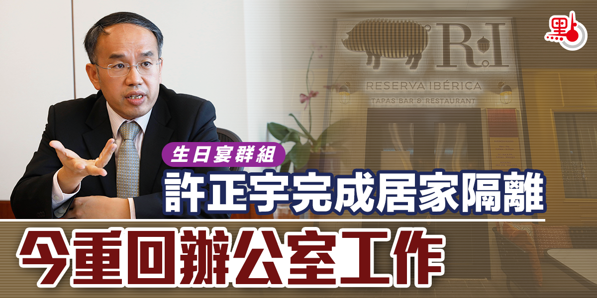 因出席港區全國人大代表洪為民1月3日晚舉行的過百人生日宴會而需家居隔離的財經事務及庫務局長許正宇今日(24日)表示,已完成在家隔離的檢疫程序,今天重回辦公室工作,對於能親身回到辦公室工作表示高興。