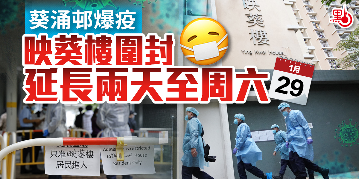 本港第五波疫情嚴峻,葵涌邨出現大爆發,多幢大廈居民須禁足。政府昨日宣布,延長葵涌邨逸葵樓圍封強檢兩日,直至本周五(28日)。政府今晚(26日)發文指,葵涌邨映葵樓亦要延長圍封強檢多兩日,直至本周六(29日)早上約7時。