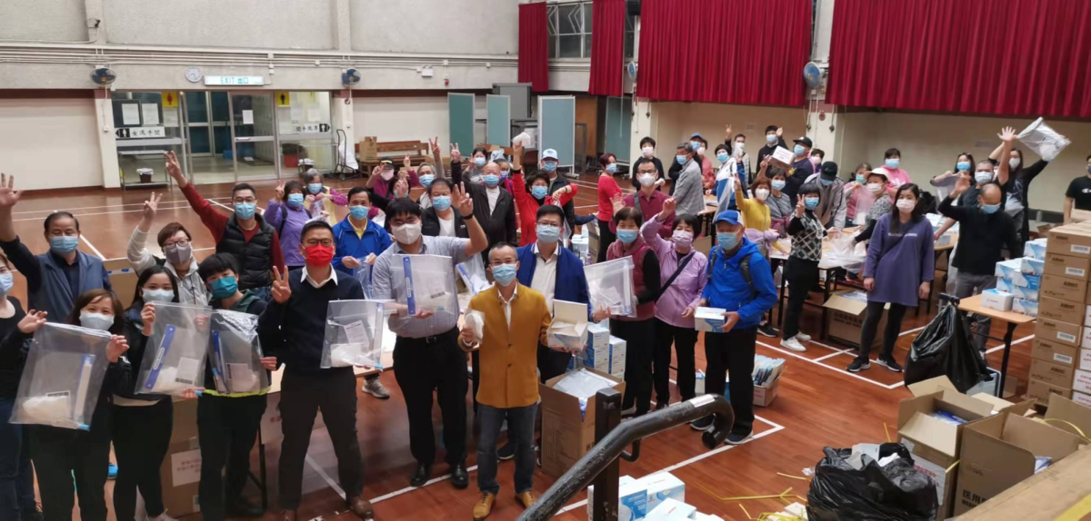 香港廣東社團總會逾2000名義工放棄家庭團聚的寶貴時間,於1月31日至2月4日在全港18區社區中心進行檢測盒的分裝工作。連日來,為抗疫不辭勞苦,從朝到晚、一刻不停地協助包裝測試包,總數量超過50萬個。年初二上午,總會多位高層亦放棄休息,到社區中心為義工打氣,並一起參與包裝工作。總會呼籲市民嚴格遵循各項社交距離措施,減少聚會,盡快接種疫苗。