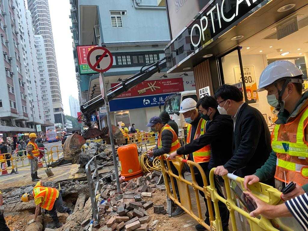 中西區立法會議員陳學鋒在社交網站表示,水務署已全力進行搶修工作,但根據現場觀察,維修工程仍需要一段時間。