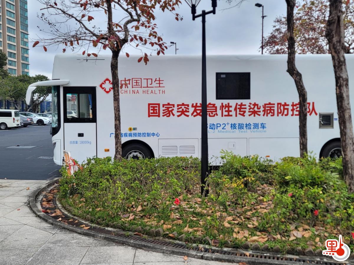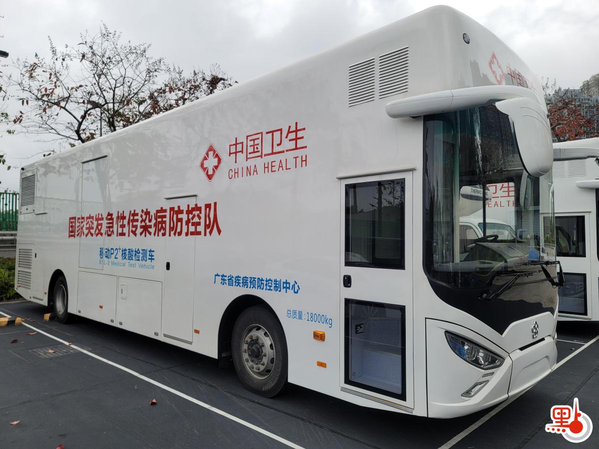 流動檢測車現時停泊在馬鞍山體育館,亦即「火眼實驗室」所在之處,檢測車寫上簡體字「中國衞生」、「國家突發急性傳染病防控隊」、「移動P2+核酸檢測車」、「廣東省疾病預防控制中心」等。據報,格力新暉醫療曾為廣東疾控中心提供兩輛移動P2+核酸檢測車,其外表與到港的檢測車相同。報道又指,兩輛車本身已交付廣東省疾控中心,並服役於國家突發急性傳染病防控隊,曾參與2021年粵桂衞生應急演練,每日檢測量可達2萬份,並整合了實驗室信息管理系統和空氣淨化系統等。