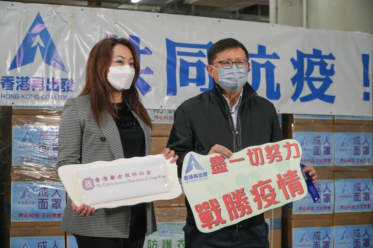 香港再出發大聯盟繼日前捐贈了5萬多份快速抗原檢測包給社會上有需要的團體及前線工作人員之後,昨日(23日)起再向奮戰在抗疫第一線的保安、清潔人員以及急需防護裝備的安老院舍員工,贈送28萬件的個人防護裝備,其中有14萬個覆蓋整個面部的透明成人防護面罩、7萬個兒童面罩、7萬件防護衣。另外,考慮到前線需求仍然殷切,大聯盟總召集人董建華先生也緊急贊助加購20萬個成人面罩,擴大支援私營及津貼安老院舍等的前線員工。
