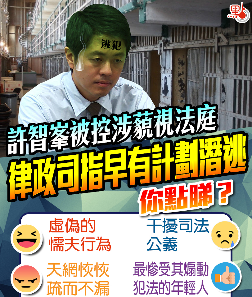 攬炒政棍許智峯一身罪名不敢面對法庭審訊而潛逃海外,被律政司加控他刑事藐視法庭罪,案件昨在他缺席下,在高等法院提訊。律政司指許智峯早有計劃潛逃,並在丹麥國會議會協助下,偽造外訪行程,誤導警方相信他會回港。法官陳慶偉聽取律政司陳詞後,押後以書面頒布裁定。