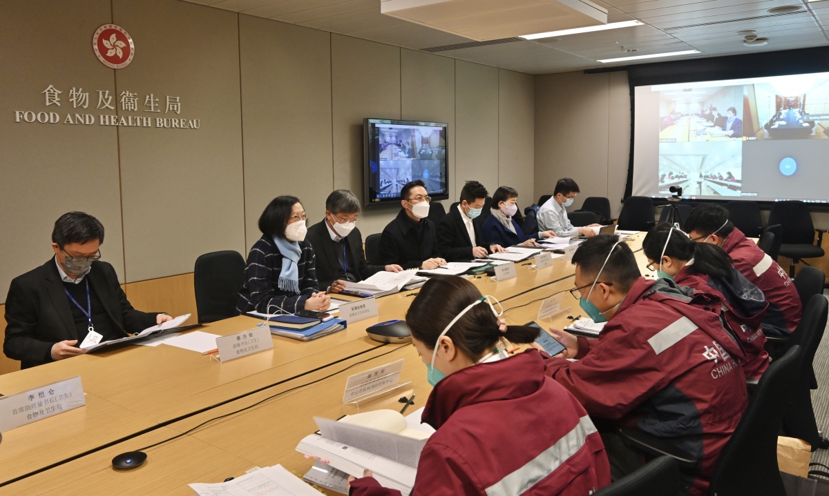食物及衞生局局長陳肇始今日(25日)與國家衞健委醫政醫管局局長焦雅輝舉行視像會議,就新冠治療情況作交流。衞健委多位官員及專家,聯同在港的內地新冠肺炎醫療救治專家組、醫院管理局行政總裁高拔陞和多位香港專家亦有出席會議。