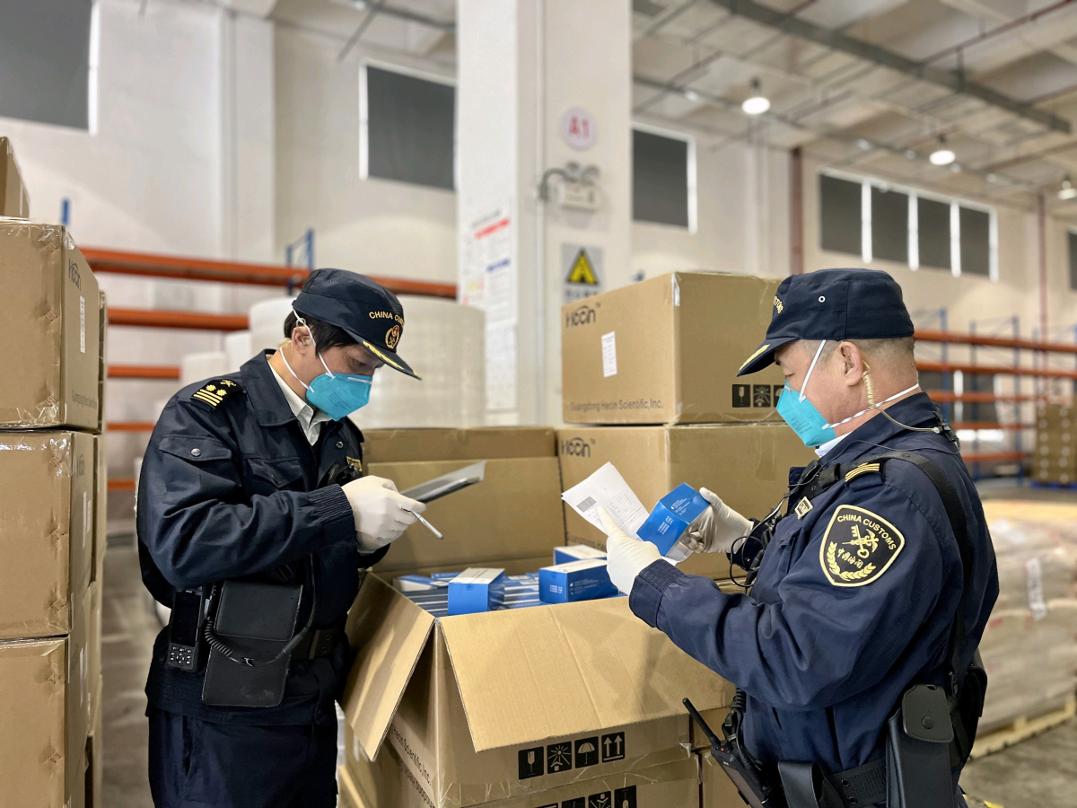 據了解,為保障供港防疫物資順利出口,沙田海關加強對出口防疫物資的監管,重點審核企業提供的資質證書,加強出口醫療物資現場查驗。同時,全力保障供港防疫物資快速通關,為企業提供「一對一」全程通關指導,在提高現場接單查驗速度的同時也可根據預約要求到企業倉庫進行查驗,確保該批供港防疫物資可及時運送到抗疫一線。