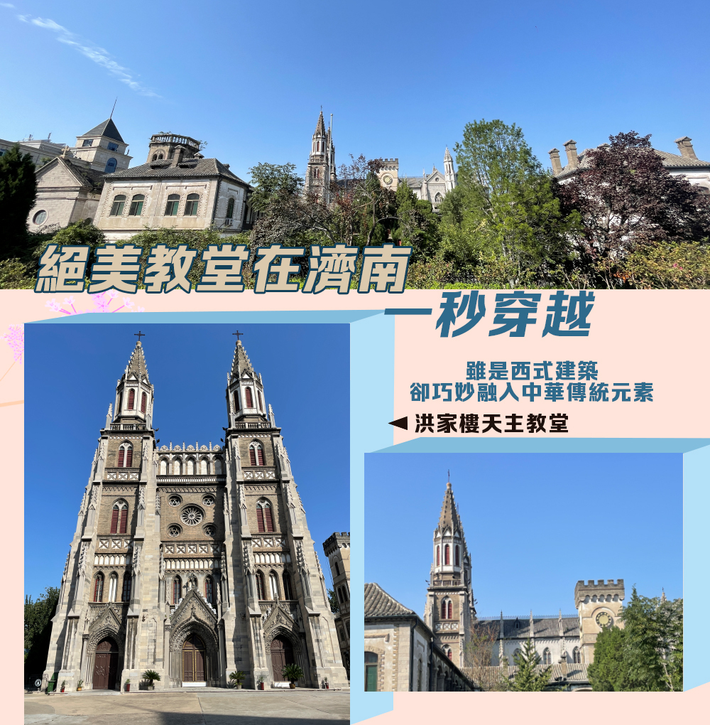 對於建築迷來說,洪家樓教堂是一座典型的雙塔哥特式建築,且各類磚雕、石雕、拱券、花窗樣式精美。雖是西式建築,卻巧妙融入中華傳統元素,黑瓦屋頂、石頭龍、仙鶴壁畫都可以找到,是不可錯過的視覺享受。