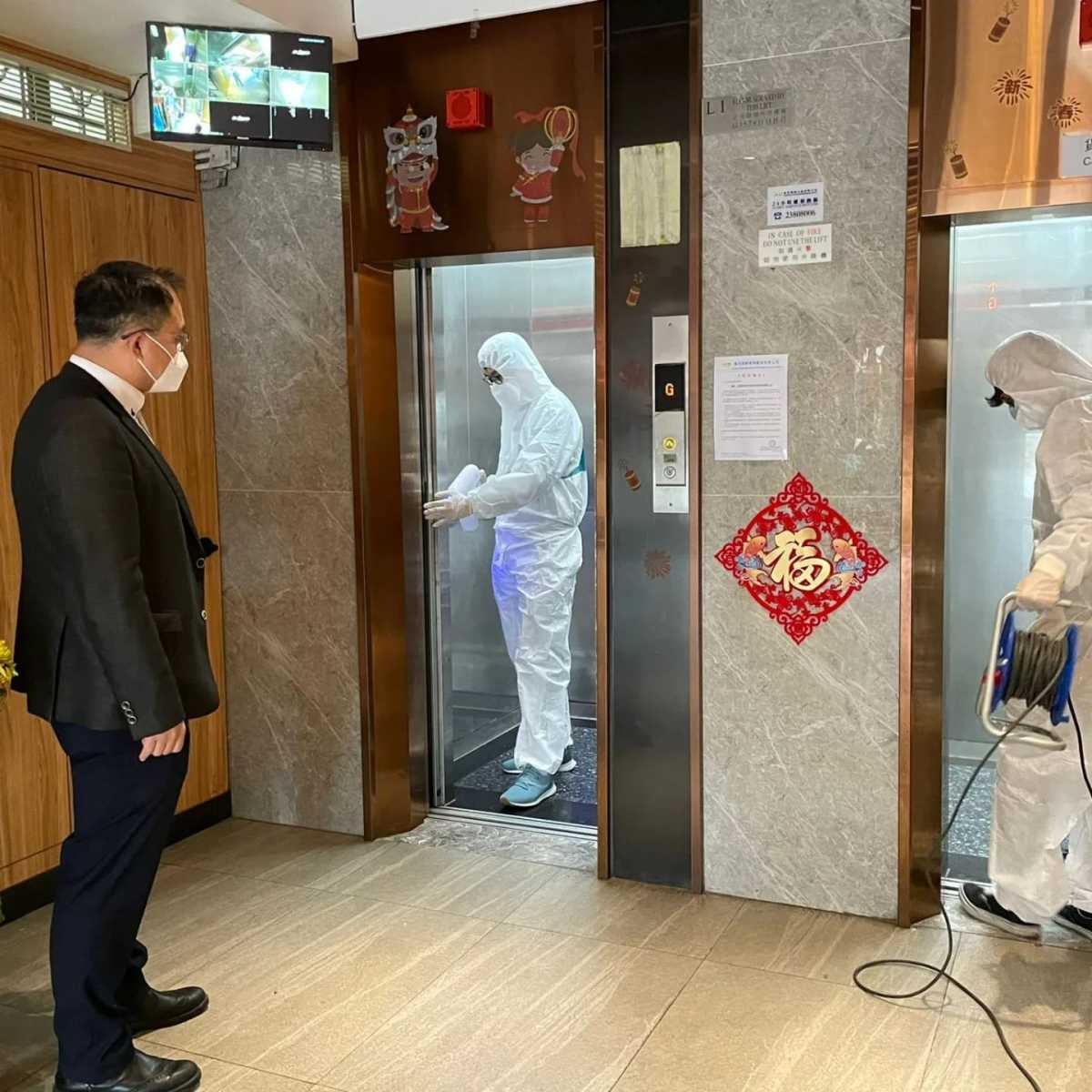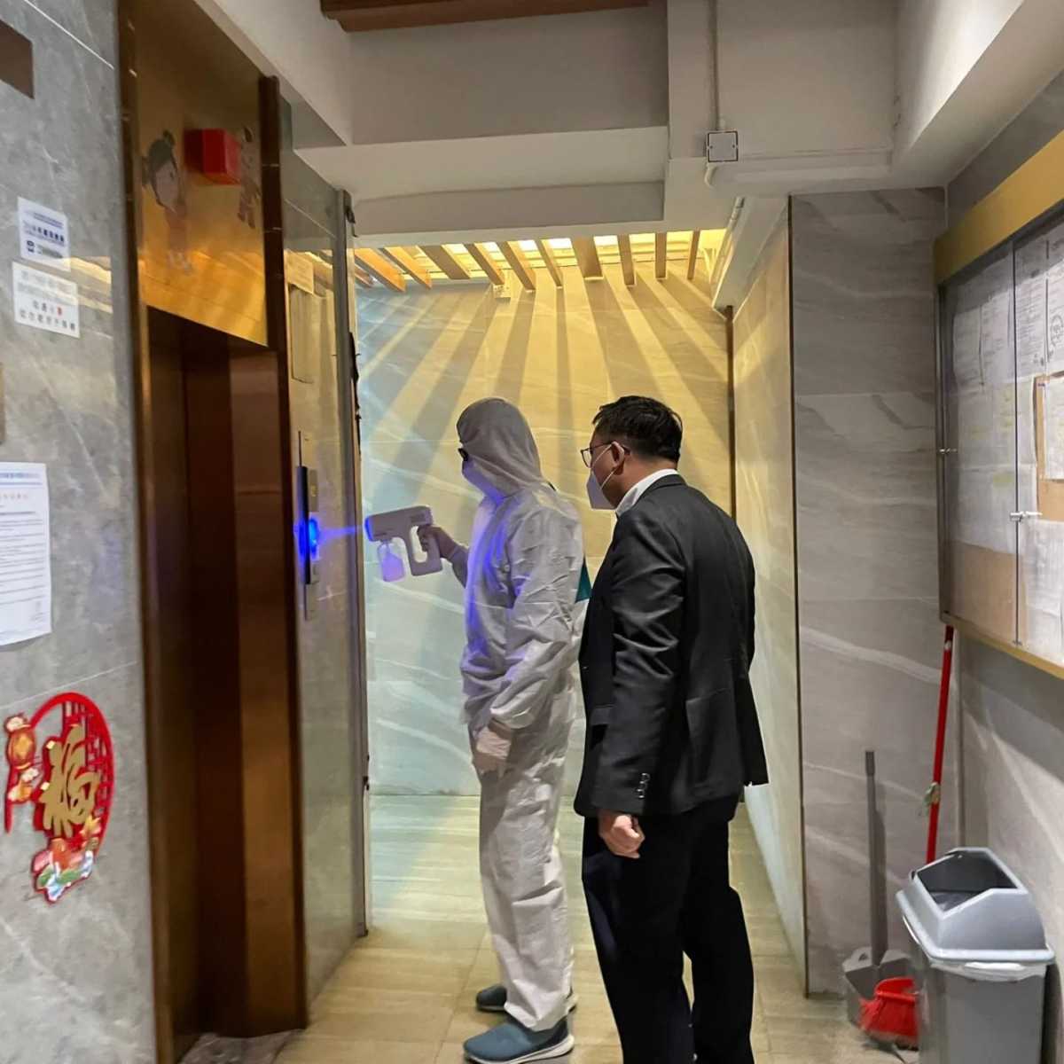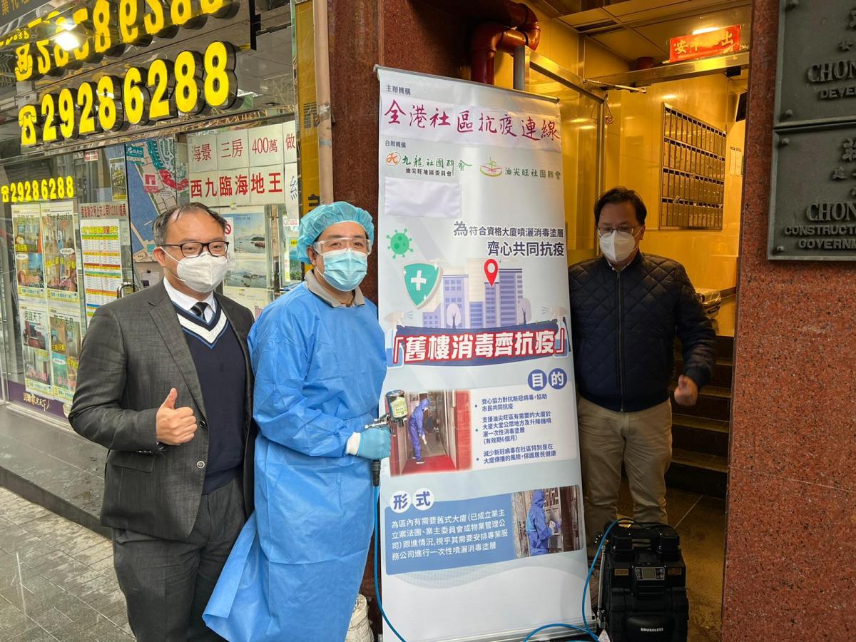 第五波疫情爆發以來,油尖旺社團聯會會長、民建聯油尖旺支部主席楊子熙,每日為街坊排憂解難。身為全港抗疫連線舊樓消毒專責小組的負責人,自2月21日領受任務來,楊子熙加班加點,建立健全舊樓消毒的立項、申報、外包公司招投標、消毒規範等各項制度。