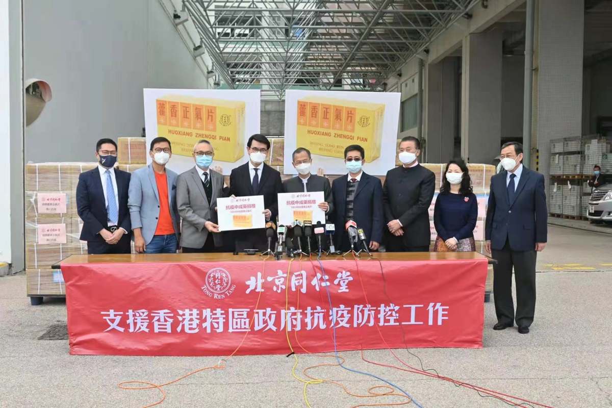 第五波疫情來勢洶洶,北京同仁堂國藥有限公司今日(2日)向香港特區政府捐贈10萬盒藿香正氣片,價值近600萬港幣,全力支援香港抗擊疫情。北京同仁堂指出,香港疫情正面臨2年以來最危急的時刻,大量確診者積壓在社區,無法入院治療,疫情防控,刻不容緩。北京同仁堂藉此抗擊疫情的緊要關頭,向香港特區政府捐贈相關物資,希望為疫情籠罩下的香港市民送去一份溫暖的關懷,也傳遞一份堅定的信心。