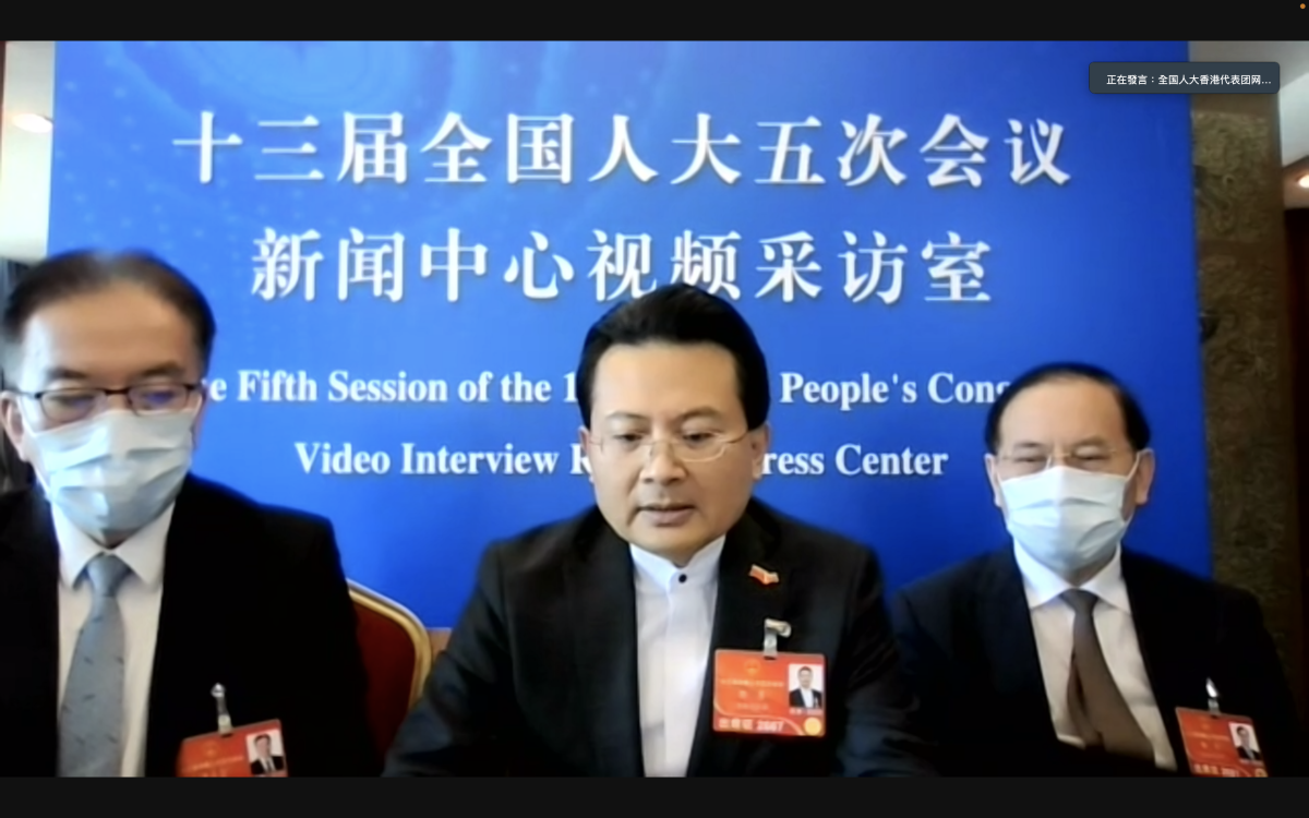 全國人大香港代表團今日(7日)中午舉辦網上記者會,介紹今日國務院副總理韓正接見港區全國人大代表並且發表講話的情況。港區全國人大代表陳勇表示,韓正向代表們提出期望,要求代表們支持特區政府統籌謀劃香港長遠發展,主動對接國家發展戰略。