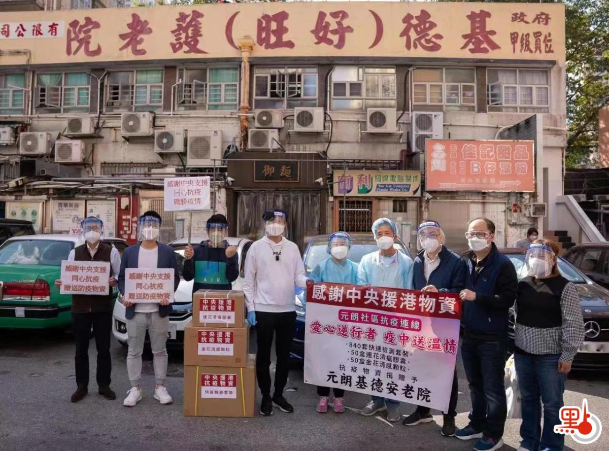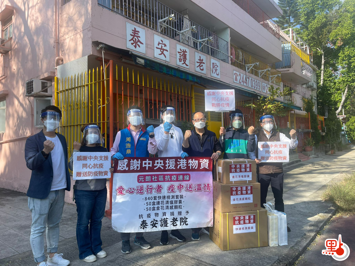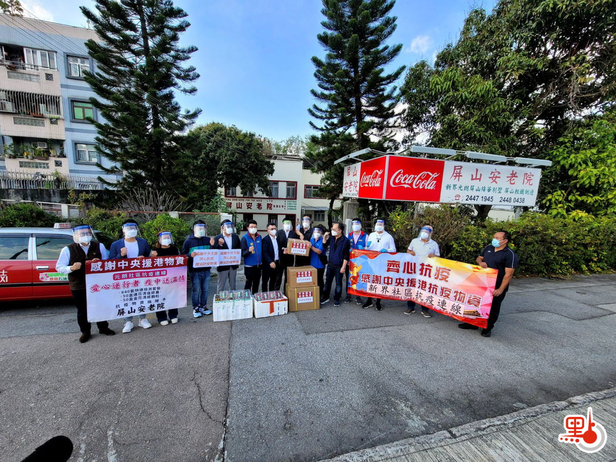 團體發言人表示,新界社團聯會、「新界地區抗疫連線」和「元朗社區抗疫連線」等社團,同步響應全港抗疫義工同盟的號召,今日下午在元朗屏山安老院開展「安老院舍抗疫物資支援」行動。今日的活動獲立法會議員、政團社團領袖、區議員、社區幹事以及市民義工積極參與,共約300多人參與活動。