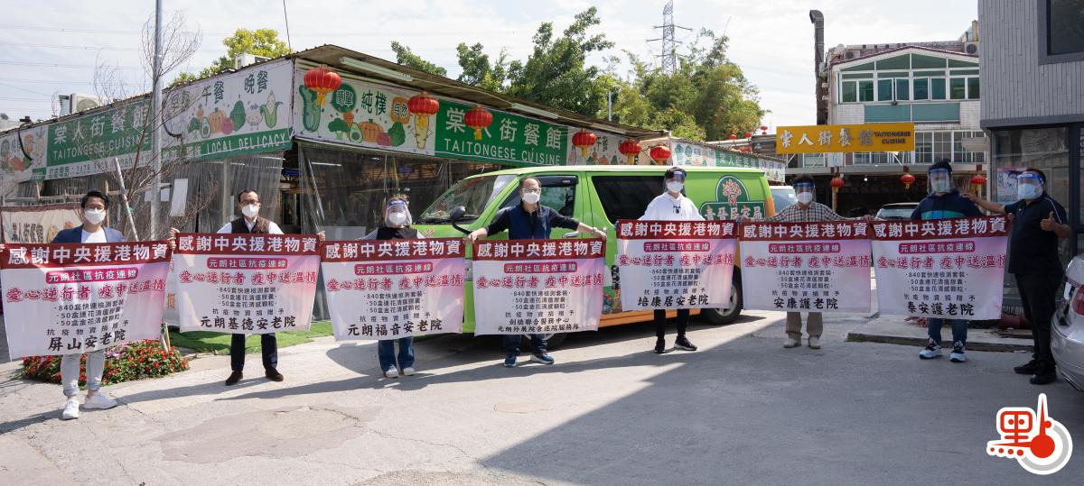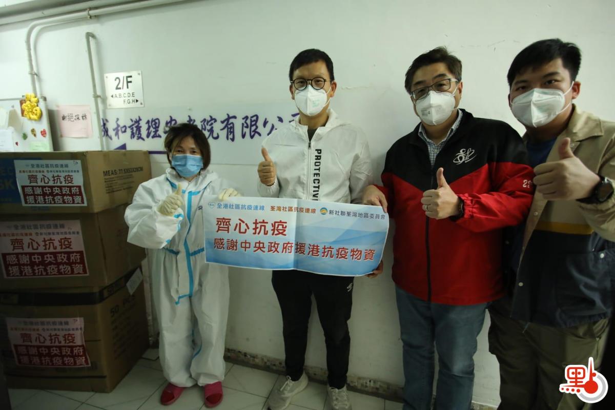 「全港抗疫義工同盟」成立後,聯同港島、九龍、新界三個地區的社團,響應「同心抗疫,關愛長者」呼籲,齊心協力,向安老院舍送上應急的抗疫物資。