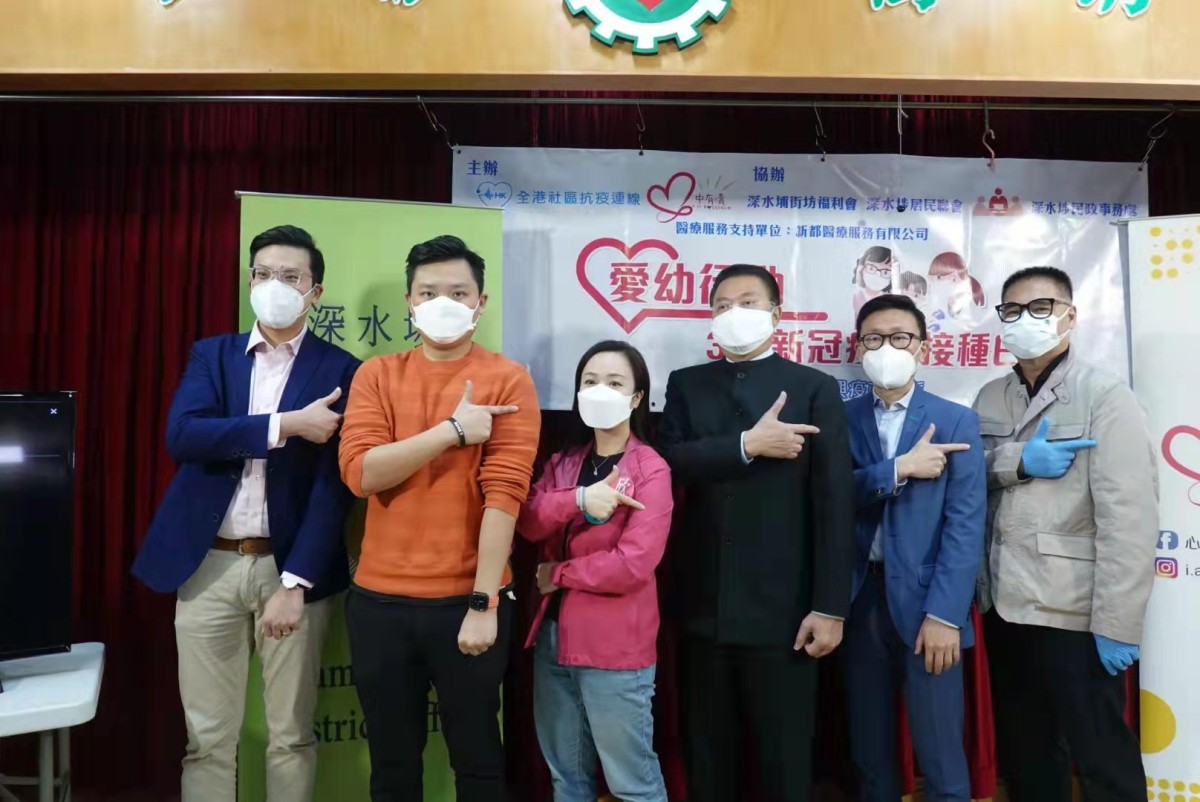 為加強保護兒童及青少年,「全港社區抗疫連線」聯同「心中有晴」,舉辦「愛幼行動・3.7新冠疫苗接種日」,今日(7日)同步在港島(南區海怡社區中心)、九龍(深水埔街坊福利會)、新界(大埔藝術中心5樓)各安排疫苗接種點,優先為已登記的兒童接種科興疫苗,同時歡迎家長及長者一同接種,抗擊第五波疫情。