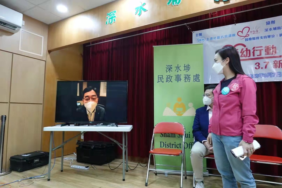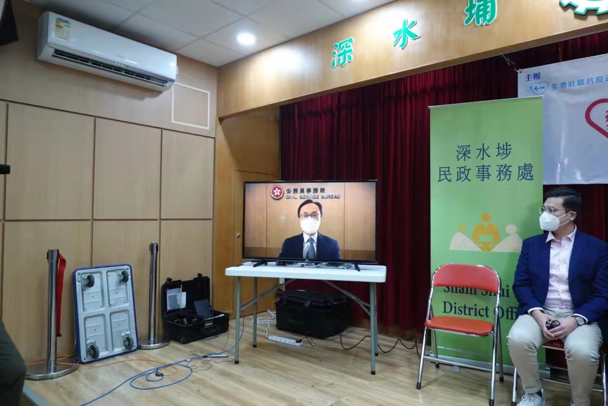 負責主理全港接種疫苗工作的公務員事務局長聶德權表示,第五波疫情非常嚴峻,大量死亡個案突顯了接種疫苗的「重要性」和「迫切性」。他表示,現時12歲以上完成一劑疫苗接種的人口已超過九成,第二針則達78%;而第三針接種人數今日將達200萬人,惟在3歲至11歲組別上,僅44%的人已接種第一針疫苗。聶德權續指,提升幼童及長者接種率是當下的重點工作,非常感謝主辦單位舉辦是次活動;而政府在2月份亦已增加13間疫苗接種中心,今日起位於長沙灣的香港紗廠社區疫苗接種中心開始運作,今個星期五創紀之城第五期亦有新的疫苗接種中心運作,為3至11歲及長者服務,星期五起港鐵青衣站U2層機場快線大堂非付費區亦有新的接種中心運作,以新方式方便市民「打針」。他最後表示,公務員將「總動員」抗疫,結合地區力量,全力投入抗疫工作,擊退疫情!