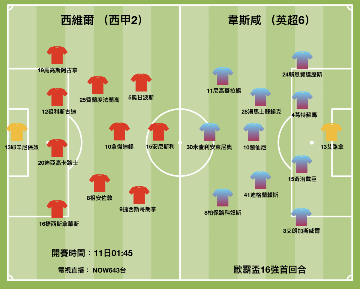 歐霸盃16強首回合西維爾主場對韋斯咸一戰明晨打響,主隊過往常常贏得歐霸盃冠軍,可說是這個賽事的專家,加上最近狀態不俗,今仗面對狀態低迷的韋斯咸取勝十拿九穩。(香港時間周五凌晨1時45分開賽,NOW643台直播)