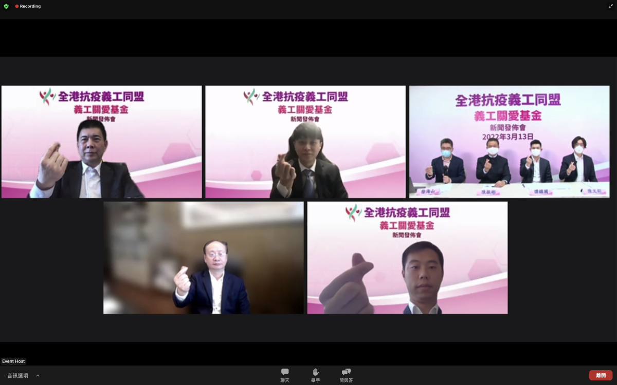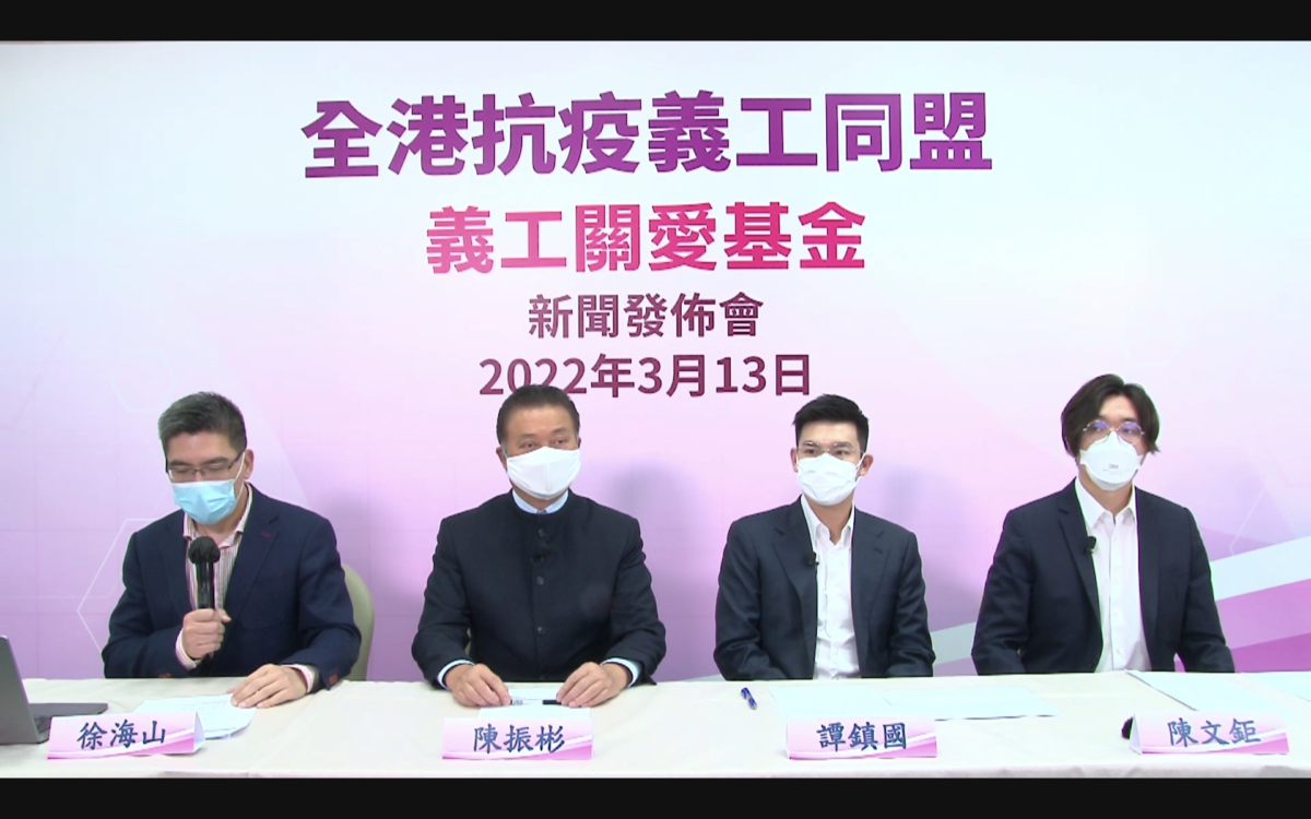 現時第五波疫情仍然嚴峻,香港社區需要動員龐大義工力量協助抗疫工作,全港抗疫義工同盟特別設立「義工關愛基金」,為抗疫義工提供三大援助,包括應急援助金、免費酒店住宿,以及全港性大型抗疫義工行動資助等,幫助染疫義工渡過難關,亦期望鼓勵義工們積極參與抗疫工作,為他們提供堅強的後盾。全港抗疫義工同盟總召集人譚錦球、全港抗疫義工同盟總召集人陳振彬、全港抗疫義工同盟義工關愛基金主席譚鎮國等人今日(13日)出席線上新聞發布會,解釋詳情。
