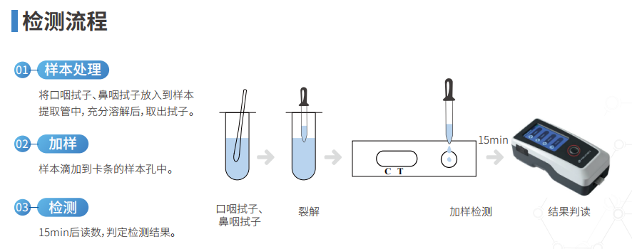據介紹,該產品操作簡便,檢測快速,不需特定實驗室環境、也不需要複雜的檢測設備,特別適用於人群快速篩查和分流管理。配套儀器體積小、便於攜帶,適用于海關、機場、學校、醫院、郵輪、診所、鄉鎮衞生院、企業單位、疾控中心等多種檢測場景;適用人群包括到基層醫療衞生機構就診,伴有呼吸道、發熱等症狀且出現症狀5天以內的人員、隔離觀察人員,包括居家隔離觀察密接和次密接、入境隔離觀察、封控區和管控區內的人員,以及有抗原自我檢測需求的社區居民。