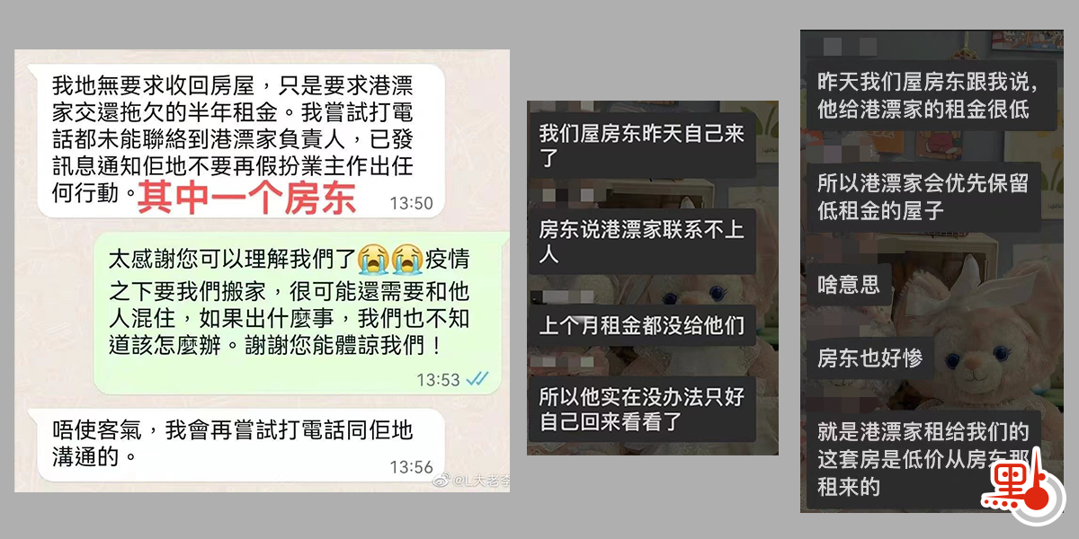 「我這邊房東主動找來,原因是沒收到上個月租金,也聯繫不上港漂家的工作人員。」港漂學生小X表示,租房時已向港漂家交齊了全年租金,但房東卻聲稱近月未收到租金,且房東對該單位住了多位學生表示驚訝,「他(房東)不知道港漂家租給我們這個事,還問我你們住了幾個人。」