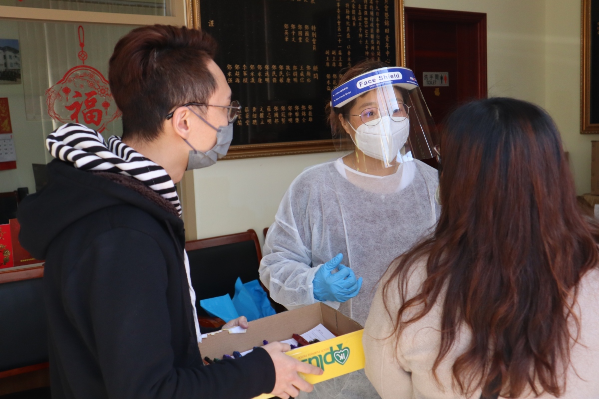 26日接種當天,從早上8點開始,何曉雯和錦田義工團25名年輕的義工就開始了工作,她細緻地給大家講解分工安排、進行工作前的培訓。何曉雯介紹說:「大部分義工都是錦田的居民,但特別的是,有兩名義工一個是消防員、一個是救護員,二人都是頭天上了夜班,覺都沒睡,就直接趕來義務支援,他們的熱心真的令我非常感動。」義工們還貼心地設置了「關愛隊」,為行動不便的長者提供幫助。