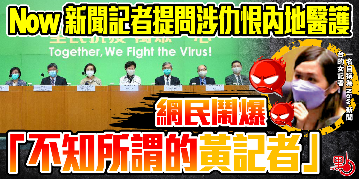 內地醫護無私援港,但在昨日政府疫情記者會上,一名自稱為Now新聞台的女記者竟向記者會發言人發問「如何投訴內地醫護人員」,引起市民憤怒。不少市民在網上留言鬧爆「不知所謂的黃記者,好明顯政治凌駕其他,完全對內地醫護人員毫冇同理心、人性化」、「人哋嚟幫你,剛嚟到,你就諗住點樣投訴人哋,有冇搞錯?香港未來嘅教育係要教人懂得感恩。」有人則反問:「而家啲記者咁有問題,我哋又應該去邊度投訴呢?」
