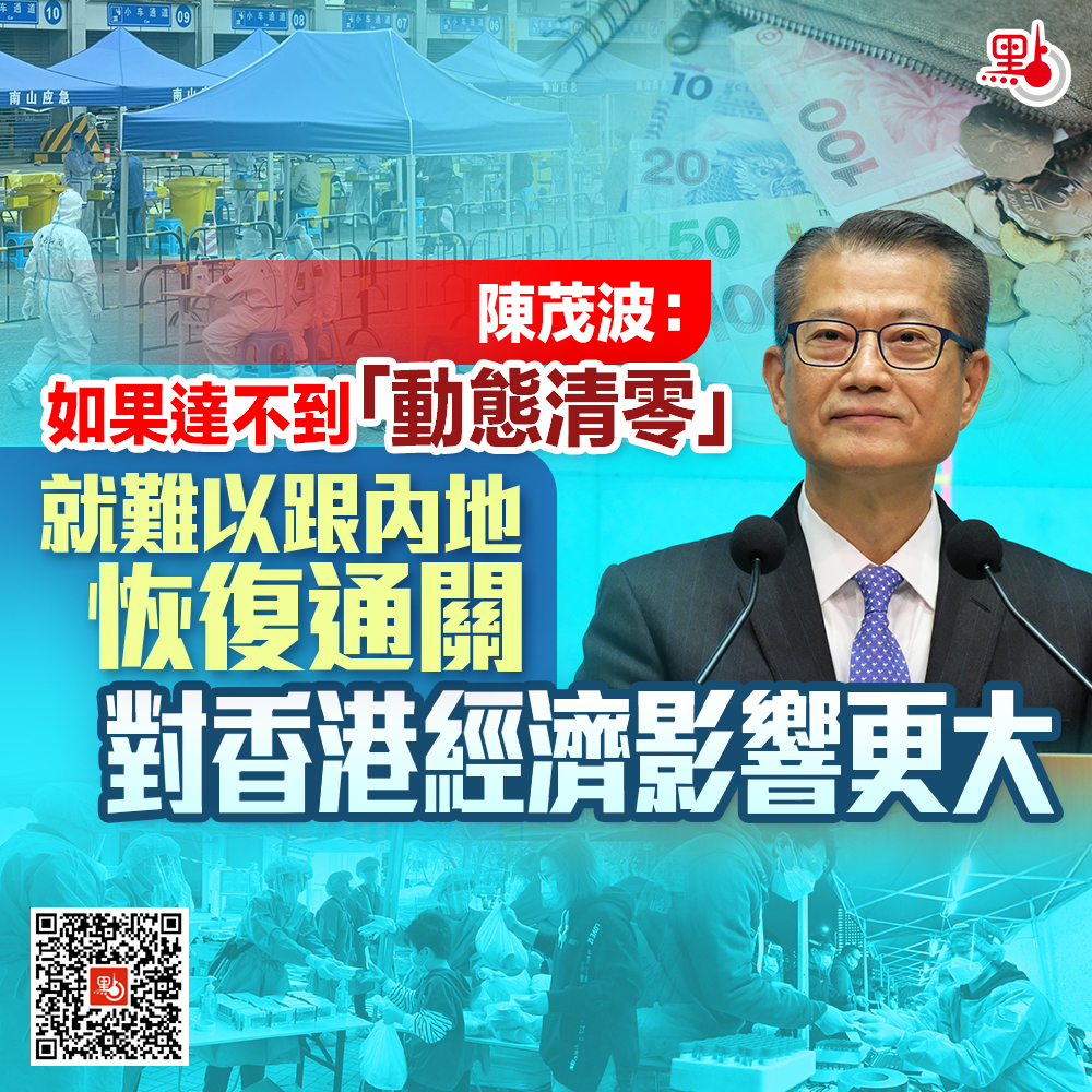 陳茂波:特區政府在行政長官的統領下,會做好相關部署。正如我剛才說的,老百姓的生命健康是最重要的,放在第一位,這是第一點。第二點,不能成功壓住這個疫情,如果達不到動態清零,保持平衡,就難以跟內地恢復通關,對我們的經濟影響更大。