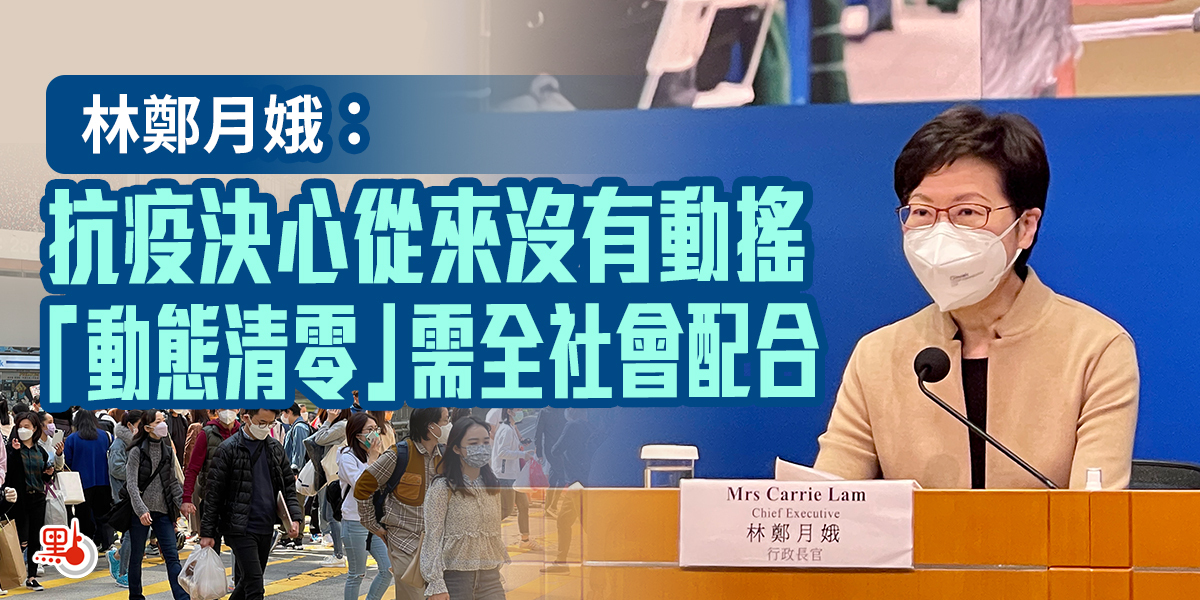 林鄭月娥:作為行政長官,作為特區之首,沒有堅定的立場,沒有堅定的信心,是很難把持這個情況,那麼就會出現一些可能不太好的效果。當然對我個人來說,第五波疫情的出現,已經是我5年任期的最後6個月,我本來以為這6個月還要做很多總結的工作,但是現在就只能做一件(事),因為抗疫是壓倒一切的任務,所以我現在每天都還是在抗疫。
