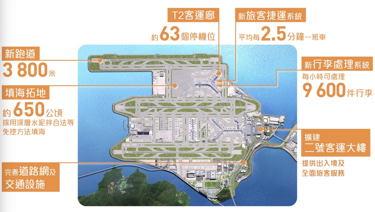 當局又指,第三跑道的鋪設工程已完成;其他相關工程涉滑行道、跑道地面燈、救援及救火設施等,亦已大致完成,料可按原定計劃,於今年投入運作。