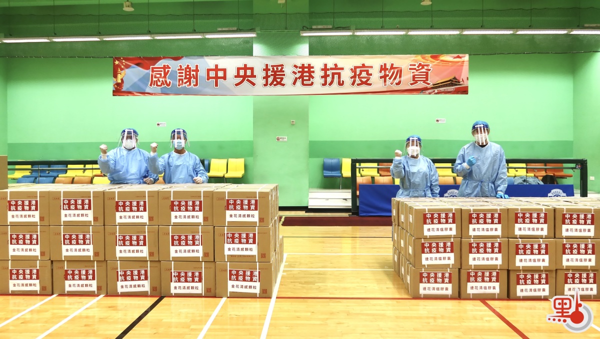 特區政府特別感謝中央捐贈共60萬盒的抗疫中成藥。工作小組已將絕大部分分發,包括透過食物及衞生局向因限制與檢測宣告而須接受「圍封強檢」的居民派發,以及透過醫管局派發給在隔離設施的確診患者及於18間中醫診所接受治療的人士。其中17萬盒已撥給民政事務總署透過「連線」及其他熱心社團在社區派發,供有需要的市民使用。