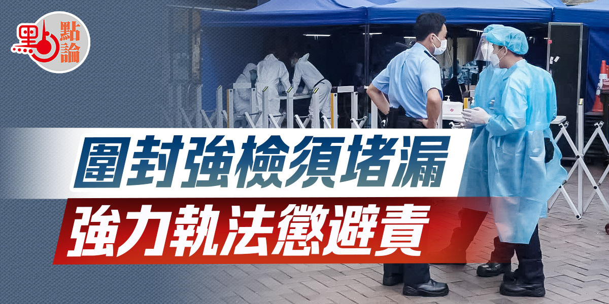 本港第五波疫情已近三個月,目前仍在日增數千宗確診高位盤桓,政府每日圍封多座污水檢測呈陽性的住宅大廈,揪出不少隱形患者。但是,不遵從強檢要求的仍大有人在。特首林鄭月娥周一在政府高層記者會上回顧指,第五波圍封行動中,違例者仍佔3.5%,亦有約1.6萬戶在行動中沒有應門,佔上門拍門戶數約一成。當局對「走漏者」有何跟進措施始終未有交代,但若對這些人網開一面或執法不力,又如何令未來合適時機展開的全民檢測做到百分百全覆蓋呢?
