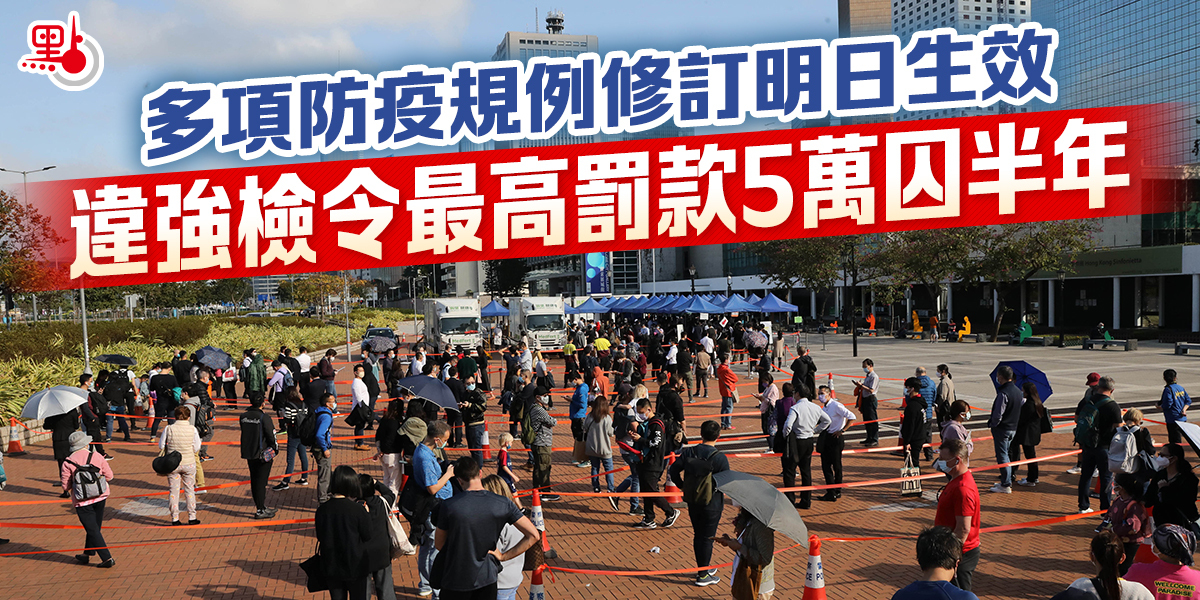 根據政府今日(30日)向立法會提交文件,由明日起,違反強檢公告的人士,最高可被判罰25000元及監禁半年;不遵從強檢令人士,最高罰款可提高至第五級,即罰款50000元及監禁半年,以加強阻嚇力。