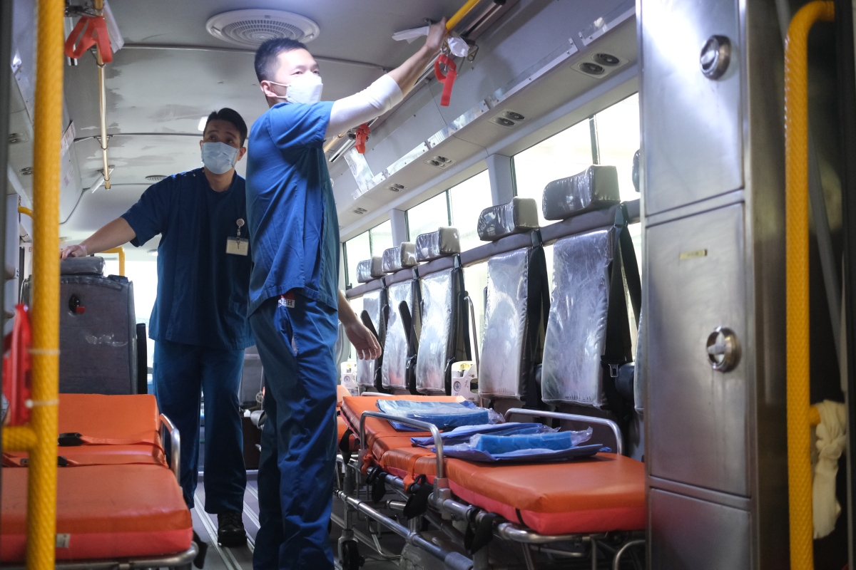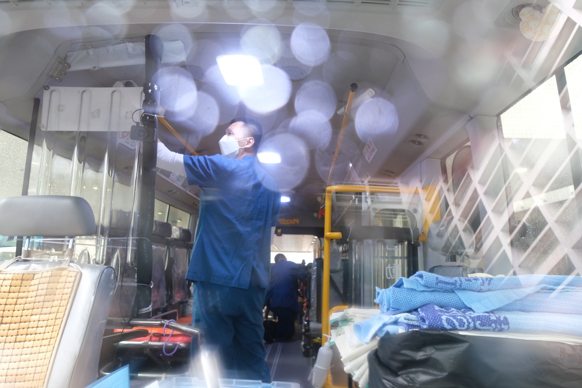 黃敬慈說,「我們每天開工後,首先會領取制服、個人防護裝備、病人用品等。由於運送的都是確診人士,接到任務後,需要穿着全套防護裝備,根據控制室指示,將病人帶往設施,每天最少都需要工作10小時,在特別繁忙的時期甚至試過連續工作15小時。」