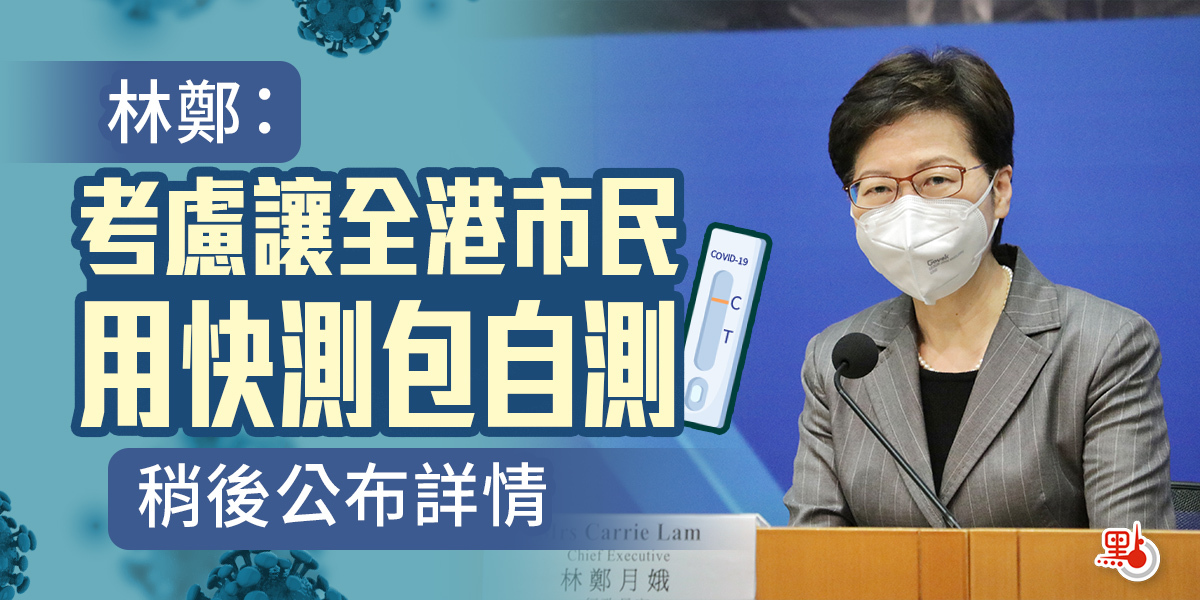 行政長官林鄭月娥今日(31日)在政府高層記者會上表示,本港疫情雖然漸趨穩定,但每日新增個案仍有約7000宗,相信仍未到進行全民檢測的最佳時機。她指,政府很快將有另一項公布,因即將向全港市民派發的防疫服務包中包含了快速測試包,會考慮是否可利用這個相對準確及方便市民的工具,讓市民在短時間內使用,來研究香港現時所處的感染狀況。詳情將於稍後公布。