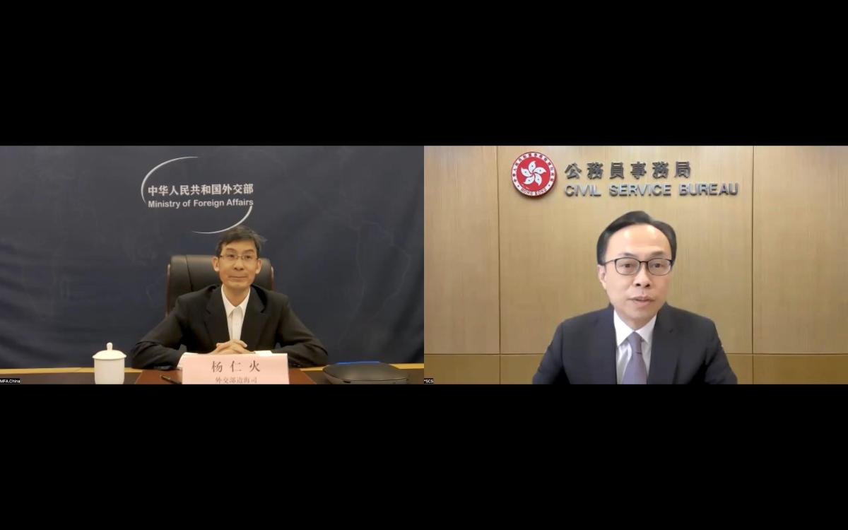 公務員學院今日(31日)與外交部駐香港特別行政區特派員公署舉辦第三場「國家外交事務系列」講座,由外交部邊界與海洋事務司副司長楊仁火透過視像形式主講,主題為「南海問題」,吸引超過220名首長級和高級公務員參與。