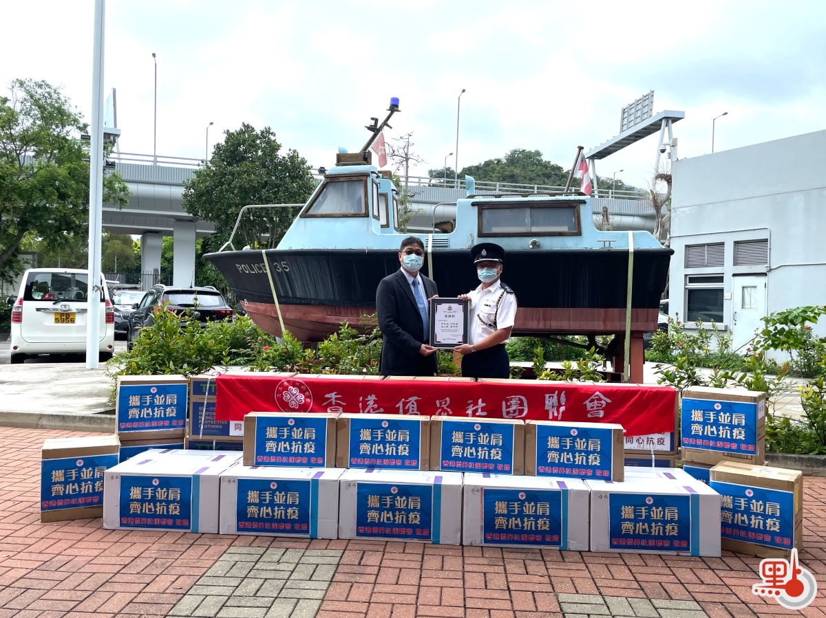 黃楚基介紹,在疫情期間,香港僑界社團聯會努力通過內地僑聯和海外僑胞等多方募集抗疫物資,已多次向有需要的社區、機構及團體捐贈防疫物資,盡香港僑界之力與社會各界同心抗疫。他說,香港水警不僅守護香港水上安全,打擊海上走私、偷渡等不法活動,在前兩年前香港抗擊「黑暴」,以及這次抗擊疫情期間,亦要抽調人手參與抗擊「黑暴」的行動和支援抗疫工作,令人十分欽佩。希望籍今次贈送一些抗疫物資,表達香港僑界對水警員警的感謝和慰問。