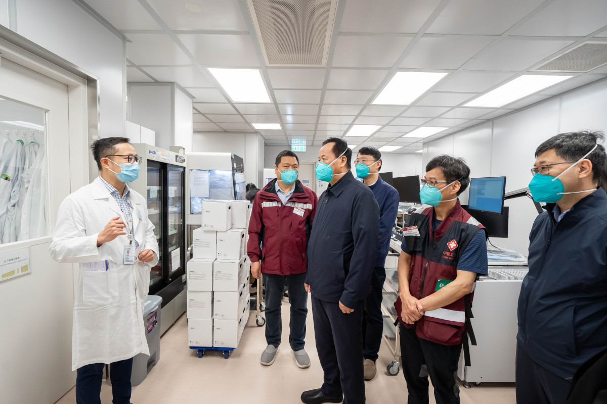 內地中醫專家組今日(4月1日)開展第四日訪港行程。早上,專家組前往北大嶼山醫院香港感染控制中心進行考察,聽取醫管局簡介中心的運作情況,並參觀隔離病房和化驗室。早前已抵港的內地援港醫療隊領隊崇雨田亦有陪同。