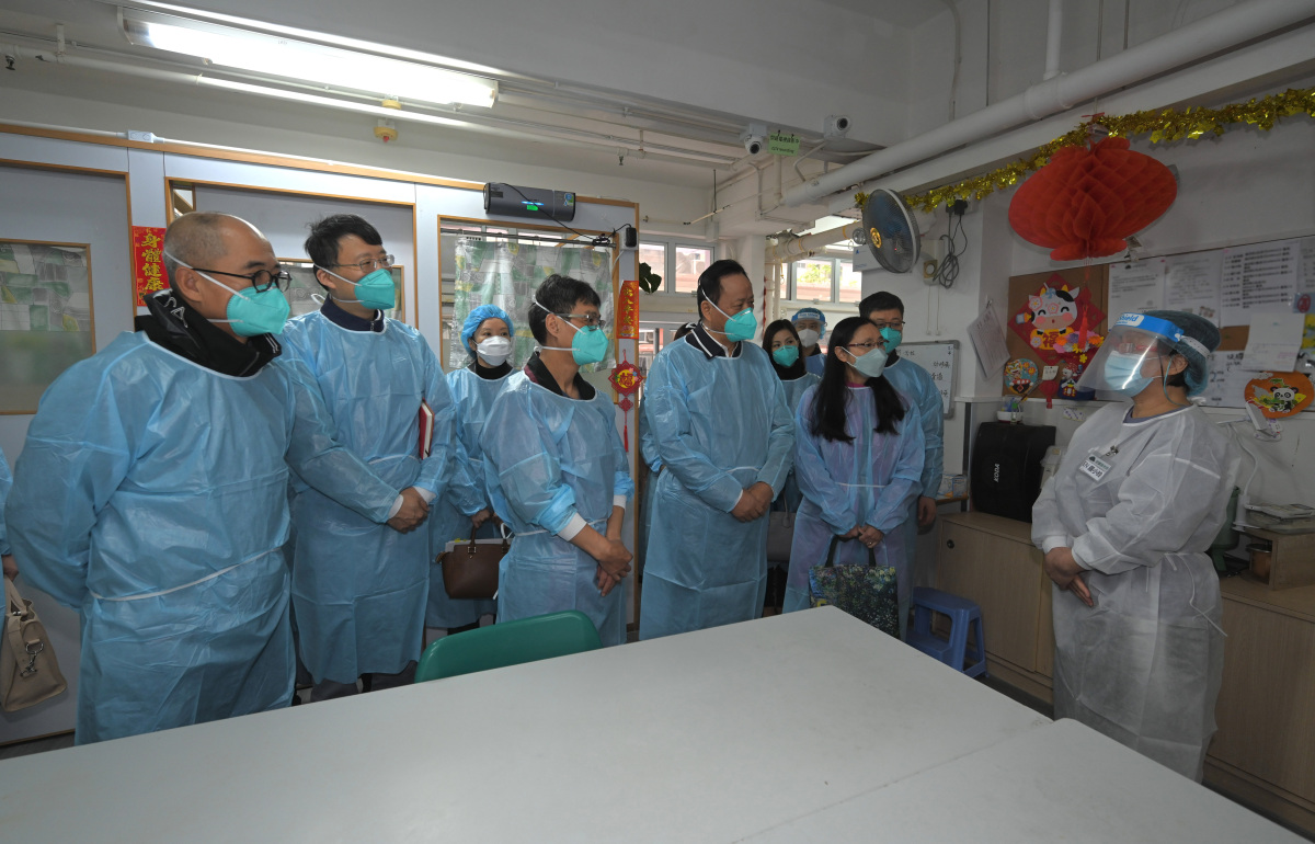 專家組在勞工及福利局常任秘書長劉焱及勞福局、食衞局、社署和醫管局代表陪同下,先後前往兩間分別位於大角咀和黃大仙的安老院舍視察。專家組聽取安老院舍負責人介紹其應對第五波疫情的情況,包括院友和員工接種疫苗的安排、安老院舍的預防感染措施,以及特區政府在疫情期間向安老院舍提供的各項支援等。