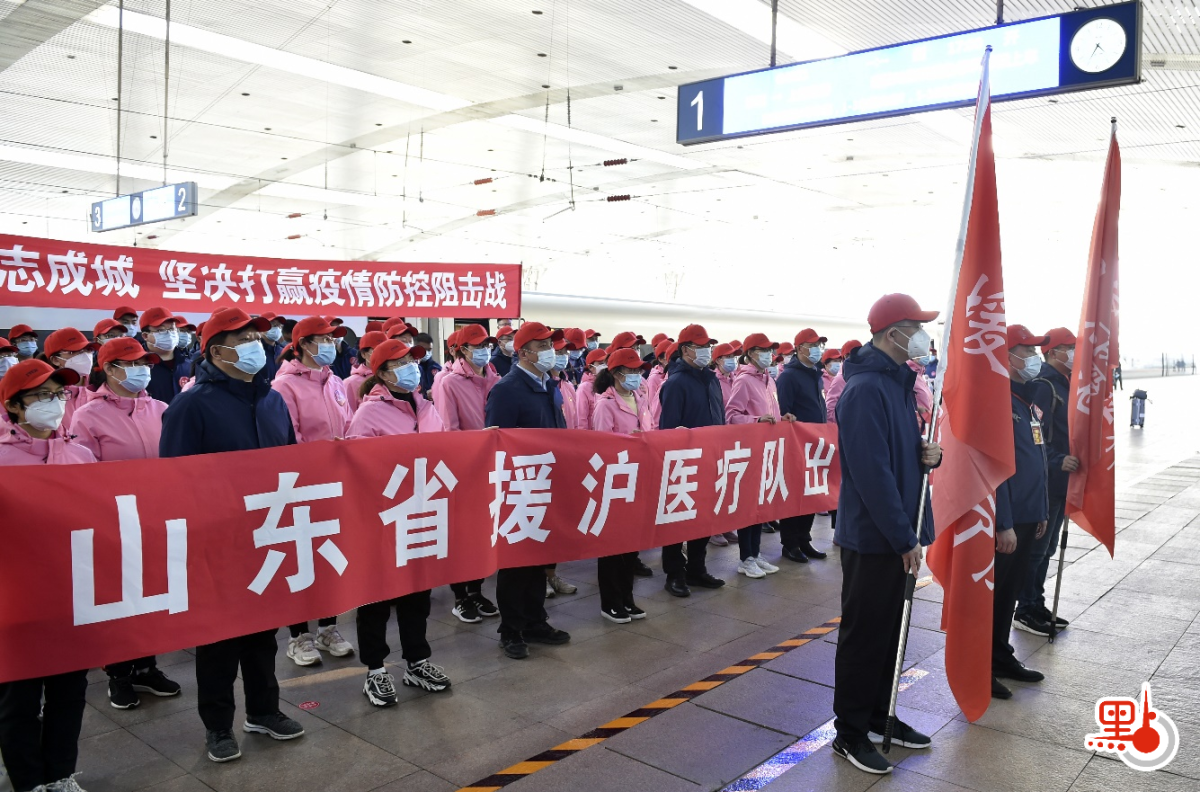 山東省選派1100多名醫療人員和核酸檢測人員組成山東省援滬醫療隊,今晚已經抵達上海支援當地疫情防控工作。醫療隊員來自山東省內11個市和16所省屬(國家駐魯)醫療機構,涵蓋醫療、護理、院感、消殺、管理等各專業。山東省委常委、常務副省長、省政協副主席王書堅到車站送行,為醫療隊授旗。