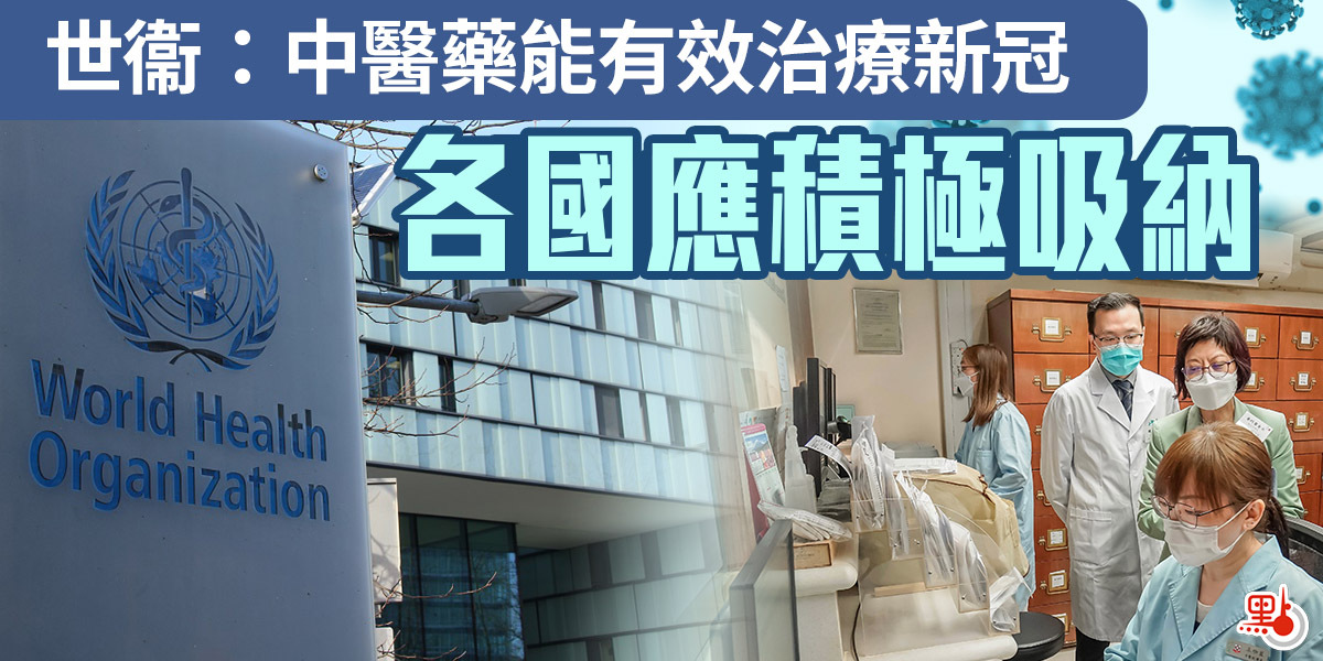 「世界衞生組織關於中醫藥治療新冠肺炎專家評估會」的報告於當地時間3月31日在世衞組織官網發布,來自世衞衞組織6個區域的21名國際專家參加了評估會,會議報告指出:中藥能有效治療新冠肺炎,降低輕型、普通型病例轉為重症,縮短病毒清除時間,改善輕型和普通型患者的臨床預後。報告同時鼓勵成員國考慮中國形成並應用的整合醫學模式(中西醫結合模式);有效管理當前疫情並對未來可能發生的大流行做好準備。