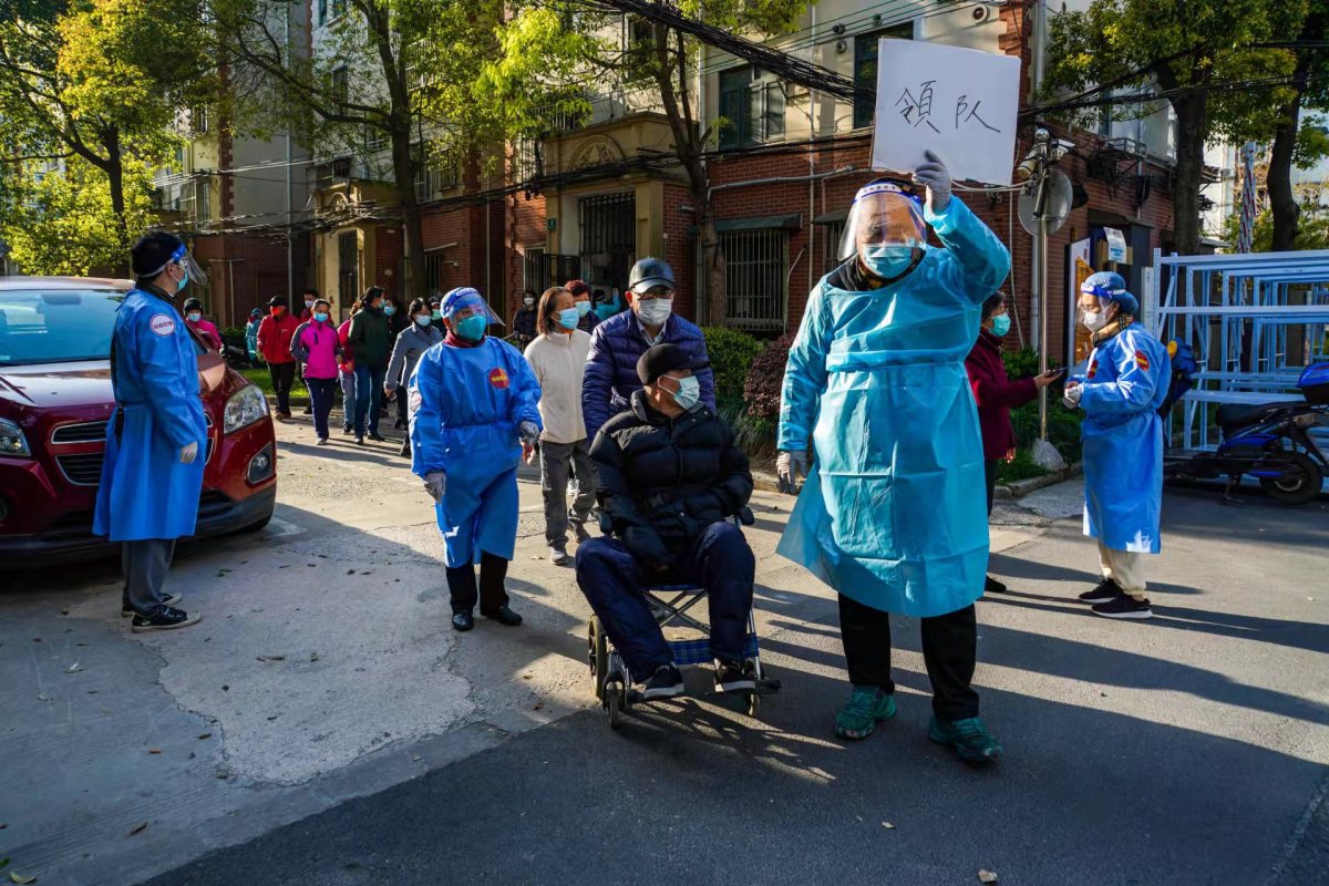 與此同時,各類人性化的舉措也層出不窮。特別是對行動不便的老者,檢測都會「開綠燈」已經成為習慣。比如每個檢測點,都會專設志願者協助仍然不會用手機操作的老人現場登記。還有的志願者則會根據現場情況協調隊伍中有老人或者行動不便,引導他們走綠色通道先行檢測。至於蹲下檢測、上樓檢測等更是比比皆是,讓很多老年人感動到熱淚盈眶。