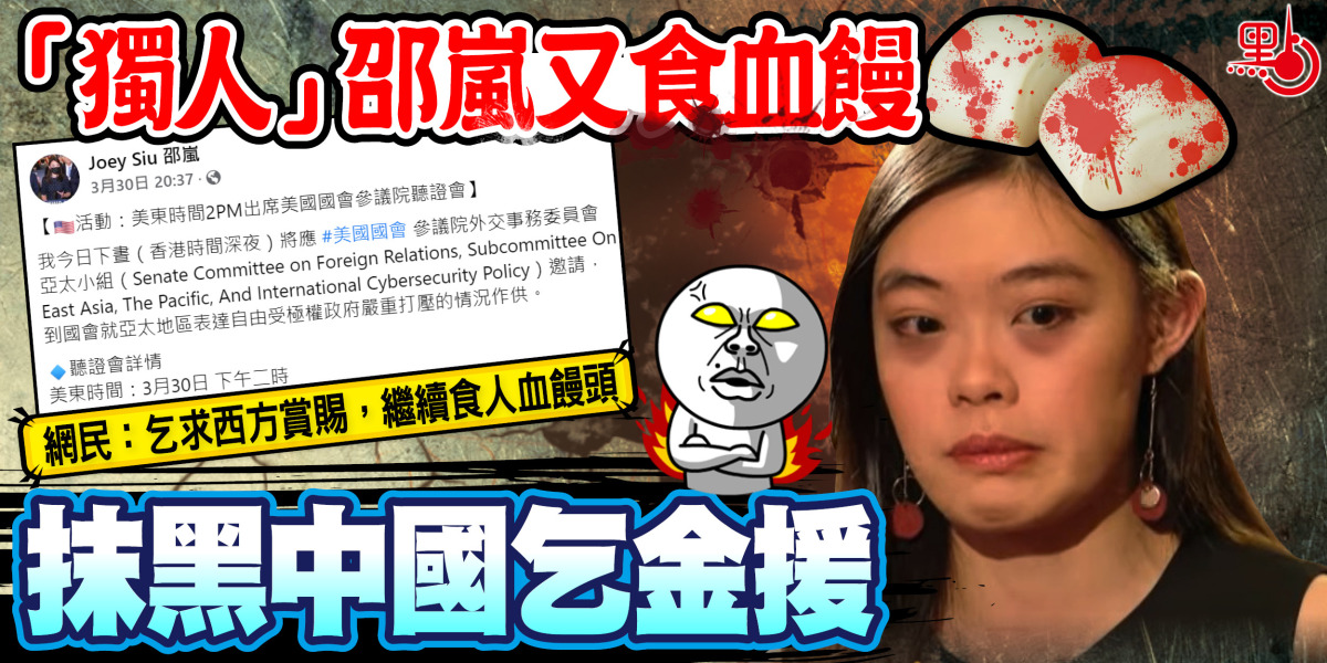 潛逃至海外的黑暴頭目為得到西方反中亂港勢力的「金援」,積極爭取曝光率,其中匿藏在美國、曾任香港城市大學學生會外務副會長的邵嵐,在今年3月30日出席美國國會參議院外交事務委員會亞太小組的聽證會,聲稱要為所謂「亞太地區表達自由受極權政府嚴重打壓的情況作證」,又聲稱香港的言論自由遭到中國政府「打壓」云云,大肆污衊中央和特區政府,為2019年黑暴及「港獨」活動塗脂抹粉。