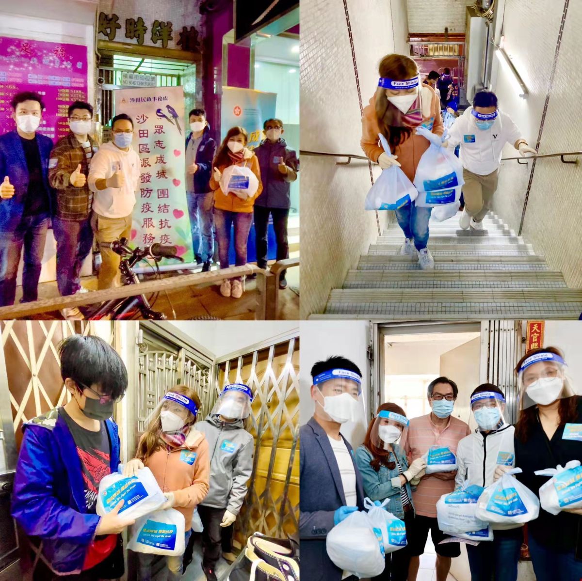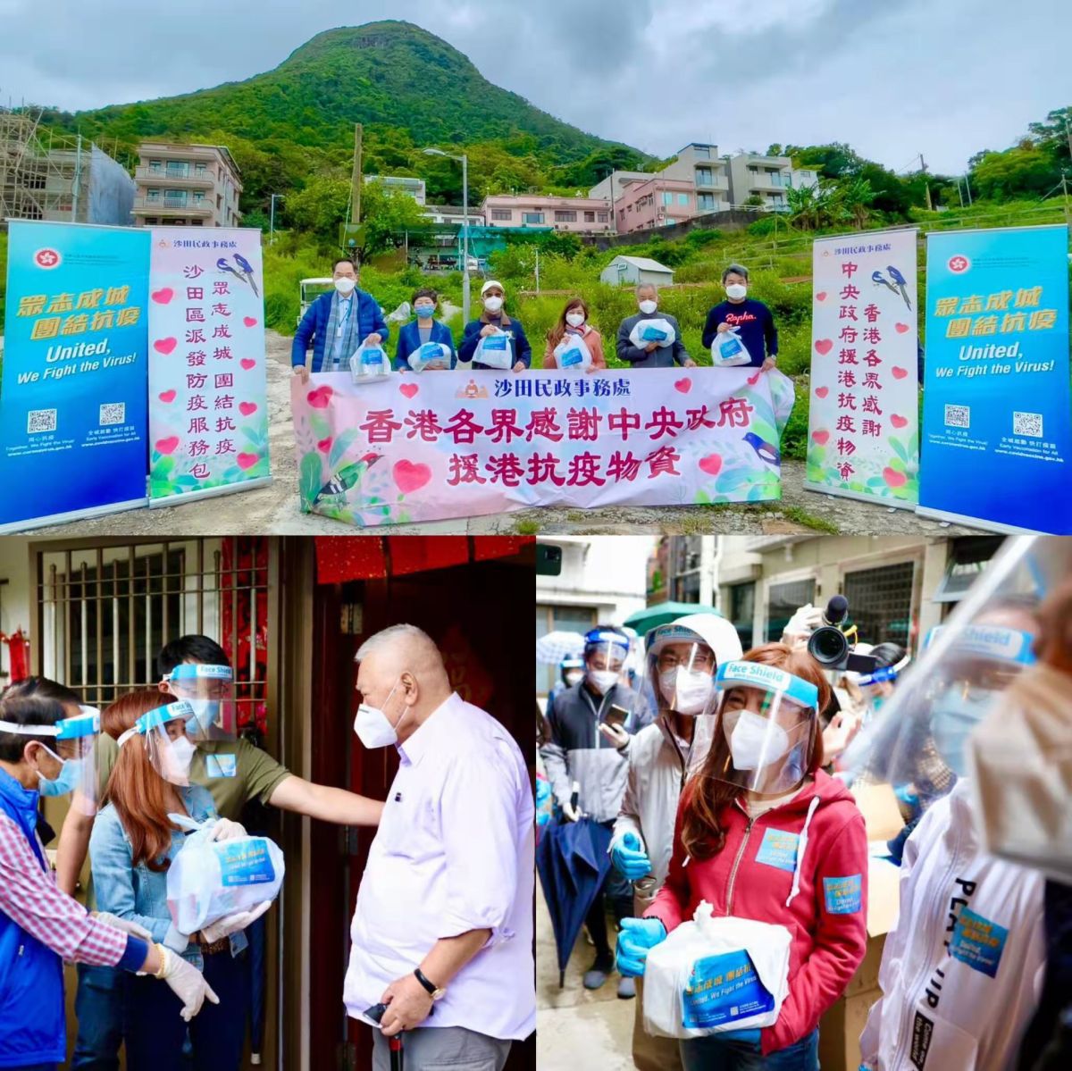 沙田民政事務處聯同不同的地區團體,包括全港社區抗疫連線、沙田社區抗疫連線、新界鄉議局、沙田鄉事委員會、民建聯、公民力量、工聯會及新民黨等,以及中聯辦新界工作部謝益明副部長、民政事務總署副署長張誼女士、立法會議員陳勇、陳克勤、葛珮帆、李世榮、李梓敬等及超過200名義工於4月2日至4月4日期間,到區內近20處地方派發防疫服務包。