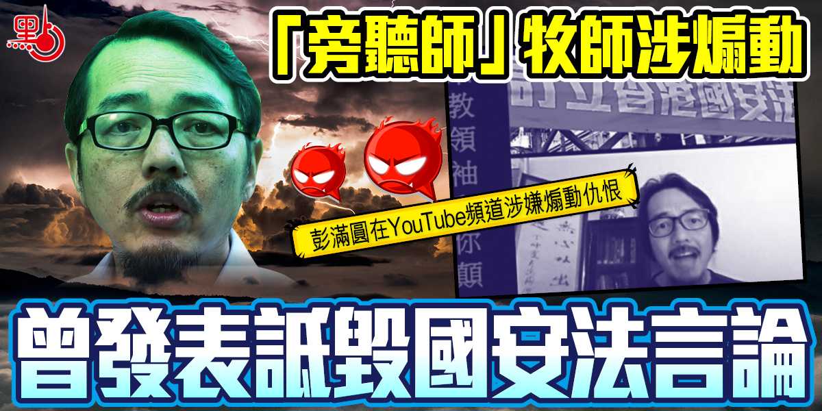 男被告彭滿圓涉及的煽動意圖案,涉及其個人YouTube頻道「牧師和你顛」,該頻道於2020年5月設立。據了解,有人在頻道發表言論詆毀香港國安法,抹黑法律成為「打擊異己」的工具,又聲稱攬炒派的「35+初選」案是「世紀冤案」,更抹黑執法部門「有理無理捉咗你先,唔畀你保釋」、「衰過第三世界」。有人又為撐暴「旁聽師」在法庭展示「黃裝」狡辯,指稱「法官唔講法律,打橫行都得」云云。