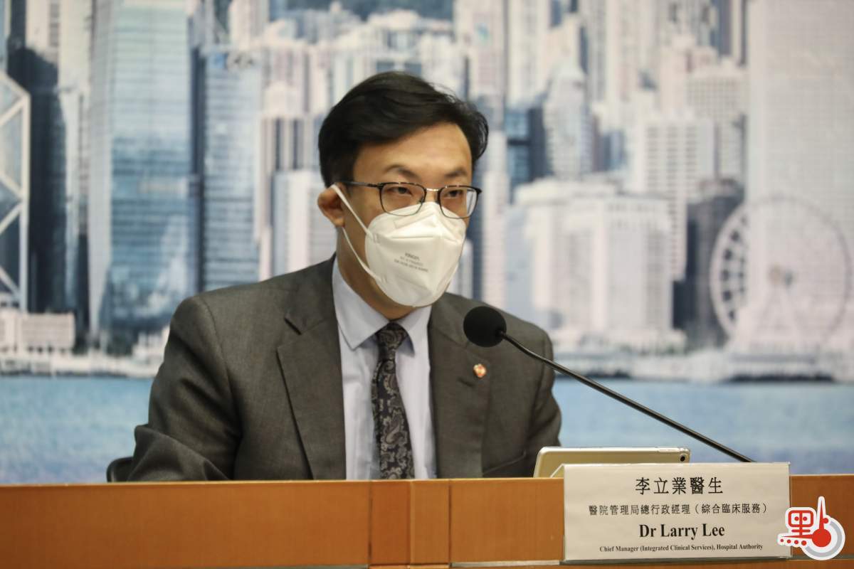 李立業指出,現時有8391名確診病人留醫,昨晚呈報新增5名病人情況危殆,5人情況嚴重,56名危殆病人於深切治療部留醫。過去一日有1711名確診病人出院。另外,1位病人在公立醫院經入院篩查發現確診,同房2名病人被列為密切接觸者。員工方面,醫管局累計共21817名職員曾確診,其中20804人已返回工作崗位。