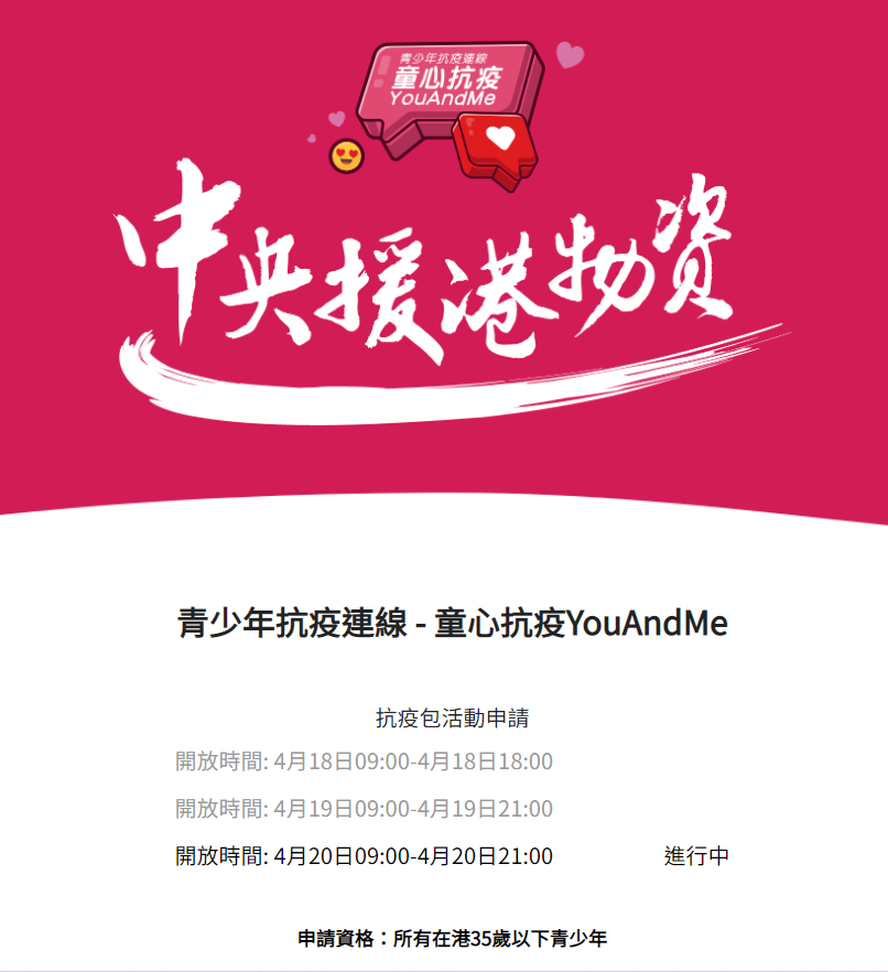 「青少年抗疫連線」再派發20萬份物資包,登記時間至今日晚上9時截止。