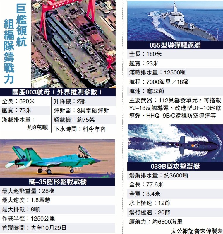 此外,有消息指,這艘正在上海江南船廠建造的003航母很可能被命名為「江蘇」號。按照解放軍武器「裝備一代、研製一代、預研一代」的發展規律,目前第三艘航母即將下水,則第四艘航母很可能已完成預研發。