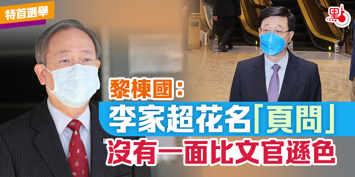 黎棟國表示,官員不應該劃分文武,特首亦應該以有能者居之,又指李家超有全面的經驗及處事能力,對工作上心、工作態度認真仔細,香港需要這類為市民服務的公職人員。