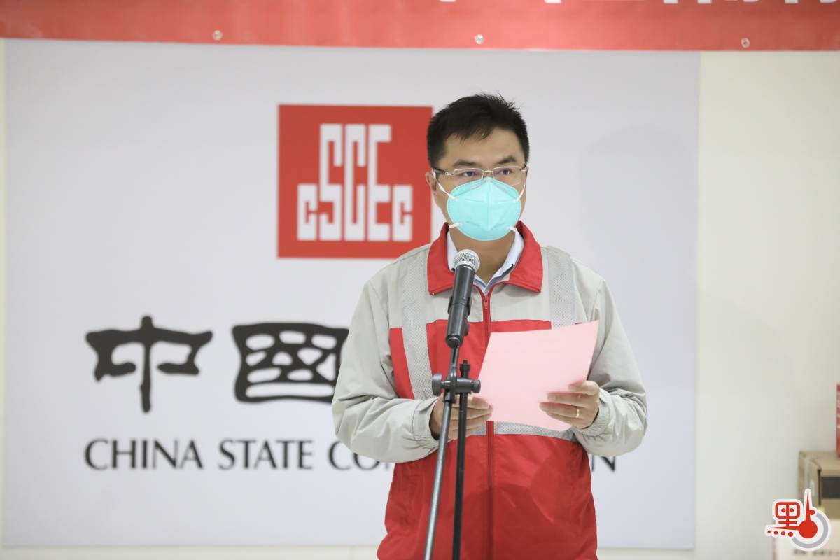 中建國際醫療總經理張毅先生,中建國際醫療營運總監趙莉莉醫生等出席了捐贈儀式,並代表方艙工作人員接收了這批珍貴的愛心抗疫物資。張毅感謝各愛心企業對方艙工作人員的熱心捐贈,指愛心物資為香港戰勝疫情註滿信心,啟德方艙社區隔離及治療設施建設項目會盡早完工,為香港提供最堅實的防疫戰線。他相信,在特區政府領導及中央的支持下,一定可以打好這場防疫抗疫攻堅戰,大家同心協力,香港定能渡過難關。