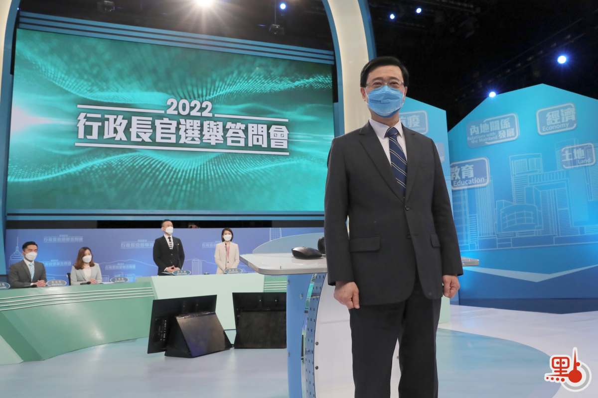 2022行政長官選舉答問會於4月30日20時30分舉行,行政長官選舉候選人李家超出席,TVB陳嘉欣(簡稱陳)、商業電台潘志謙(簡稱潘)主持。答問會由無綫電視新聞部、香港電台新聞部、鳳凰衛視香港台、新城電台新聞部、Now新聞台、有線新聞台、商業電台新聞部7家電子傳媒合辦。
